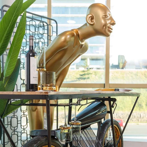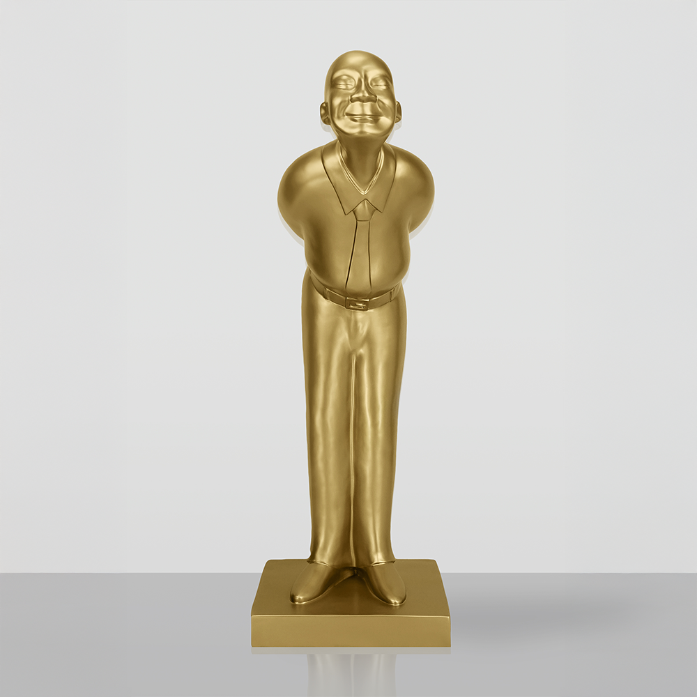 Ihr modernes Design und die elegante goldene Oberfläche verleihen jedem Raum einen besonderen Charakter und Stil. Die Figur kann nicht nur dekorativ, sondern auch werbewirksam eingesetzt werden, indem sie die Aufmerksamkeit von Gästen und Kunden auf sich zieht. Sie eignet sich ideal als originelles Ausstellungselement oder als außergewöhnliche Dekoration im privaten und öffentlichen Bereich.